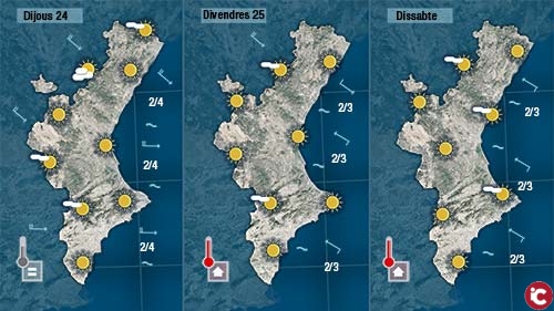 A la mar hi haurà temporal al litoral del nord i centre de Castelló, al del sud de Vaència i al litoral nord dAlacant.