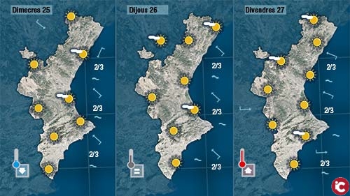 El ponent no tindrà continuïtat i això provocarà lentrada de les brises dimecres a migdia afavorint un nou descens de les temperatures que es mantindran la recta final de la setmana engre els 25 i els 28 graus a la major part de les nosres comarques.