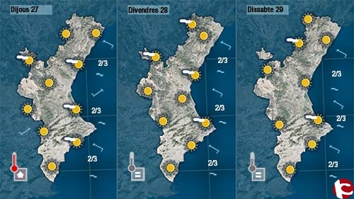 Demà dimecres a primera hora encara es deixarà sentir el mestral (cerç) al nord on però a poc a poc també anirà encalmant. Les mínimes no patiran canvis substancials però les màximes ja notarem com pugen al centre i per linterior.