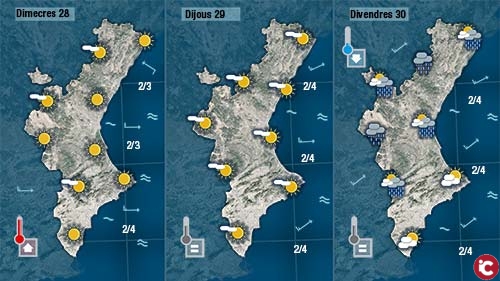 Dimecres fins i tot tindrem calor al centre del dia quan el mercuri dels termòmetres toque o supere els 25 graus.