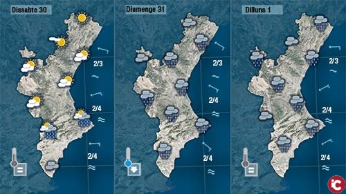 Hui, com ahir i segurament com demà serà lestabilitat que domine el panorama meteorològic. El vent continuarà bufant de llevant, amb ratxes moderades al sud, i tot i que la mar no estarà tan brava com els últims dies encara estarà rebolicada a la mitad sud de la Comunitat