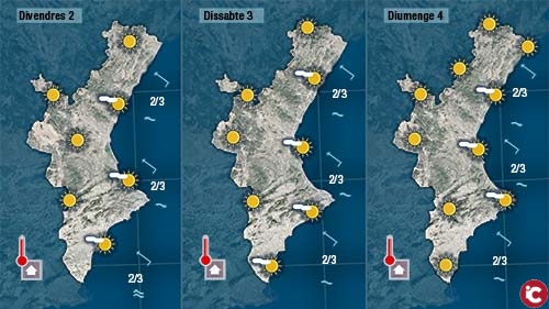 El que més crida l’atenció dels mapes a partir de divendres és el símbol de les temperatures que de forma constant i progressiva aniran pujant dia a dia deixant dies de molta calor aprtir de dissabte.