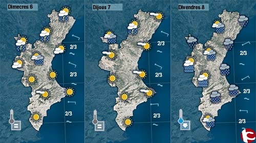 Dimecres i dijous els mapes marquen tronades vespertines al nord, i sol al centre i al sud, i a partir de mitjan setmana haurem destar atents al que diguen els mapes perquè divendres, a dia de hui, donen pluges més generals.