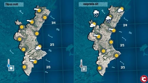 Demà, pot ser pugen les temperatures al centre del dia després dúna nit de nou molt freda. I com passarà hui, de vesprada vorem més núvols al nord que podrien afegir algun centímetre de neu.