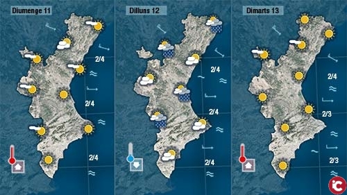 Diumenge les temperatures diürnes pujaran uns 5 graus. Perfecte per a fer la paella familiar, perquè encara que de vesprada hi haurà més núvols no serà fins dilluns quan ens creue un fornt que podrà deixar ruixat dèbils i dispersos.