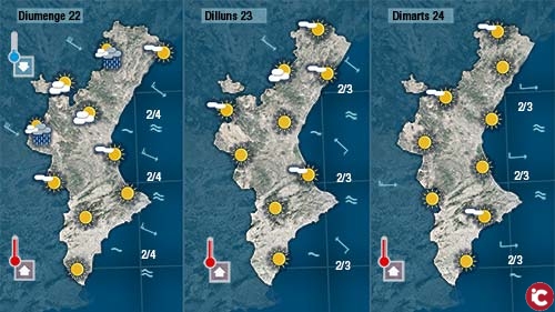 El mestral s´imposarà per tot arreu diumenge acompant¡yant un front que només deixarà ruixats dèbils al nord i per l´interior. A migdia tindrem sol i temperatures més altes, sobretot a la costa on quedaran pròximes als 30 graus.