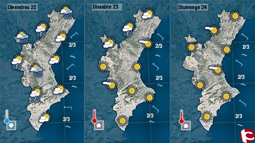 Demà dijous podrem tindre alguna tronada de vesprada a les muntanyes del nord, a Castelló, però també un lleuger ascens de les temperatures a la major part dobservatoris (un o dos graus).