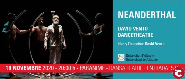 Demà dimecres, 18 de novembre, a les 20 hores, el Paranimf de la UA acull la representació de l’espectacle Neanderthal, com a part de la programació d’arts escèniques de la UA. L’espectacle, guardonat amb el Premi Fetén 2020 al millor espectacle de nit, és fruit de la col·laboració entre la companyia de dansa David Vento, el músic Silberius d’Ura, Neonymus, i l’estudi Logela Multimedia. Amb idea i direcció de David Vento, Neanderthal ofereix un mix en el qual dansa, breaking, circ, teatre físic i arts visuals entren en ressonància en una experiència creativa singular i potent. L’espectacle proposa un recorregut escènic i sonor per a poder redescobrir les nostres formes primitives i contemporànies, la influència del ritu en la transmissió de missatges de caràcter tribal. Com l’home d’avui maneja la informació, quins ritus troba, inventa o recicla, i com es transforma quan els assimila i intentar oposar-s’hi, evadir-los o perpetuar-los.