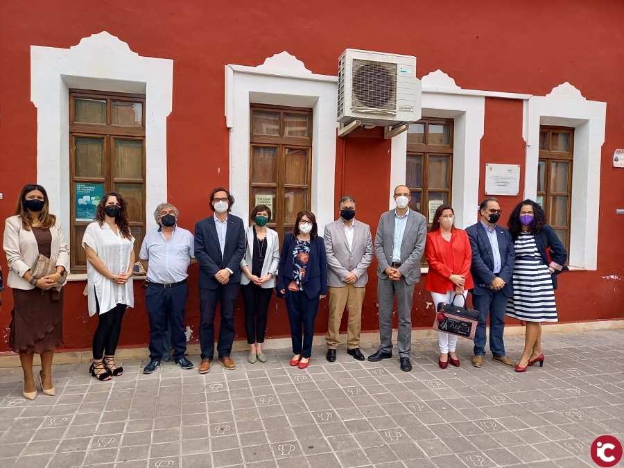 Tras una reunión institucional celebrada en la alcaldía, se han unido a la delegación varios concejales de la corporación municipal y los cuatro anteriores directores de la sede (José Silva, Fernando Ballester, Antonio Martínez-Puche y Mariángeles Alonso) para visita las instalaciones universitarias en el complejo de La Tercia.
