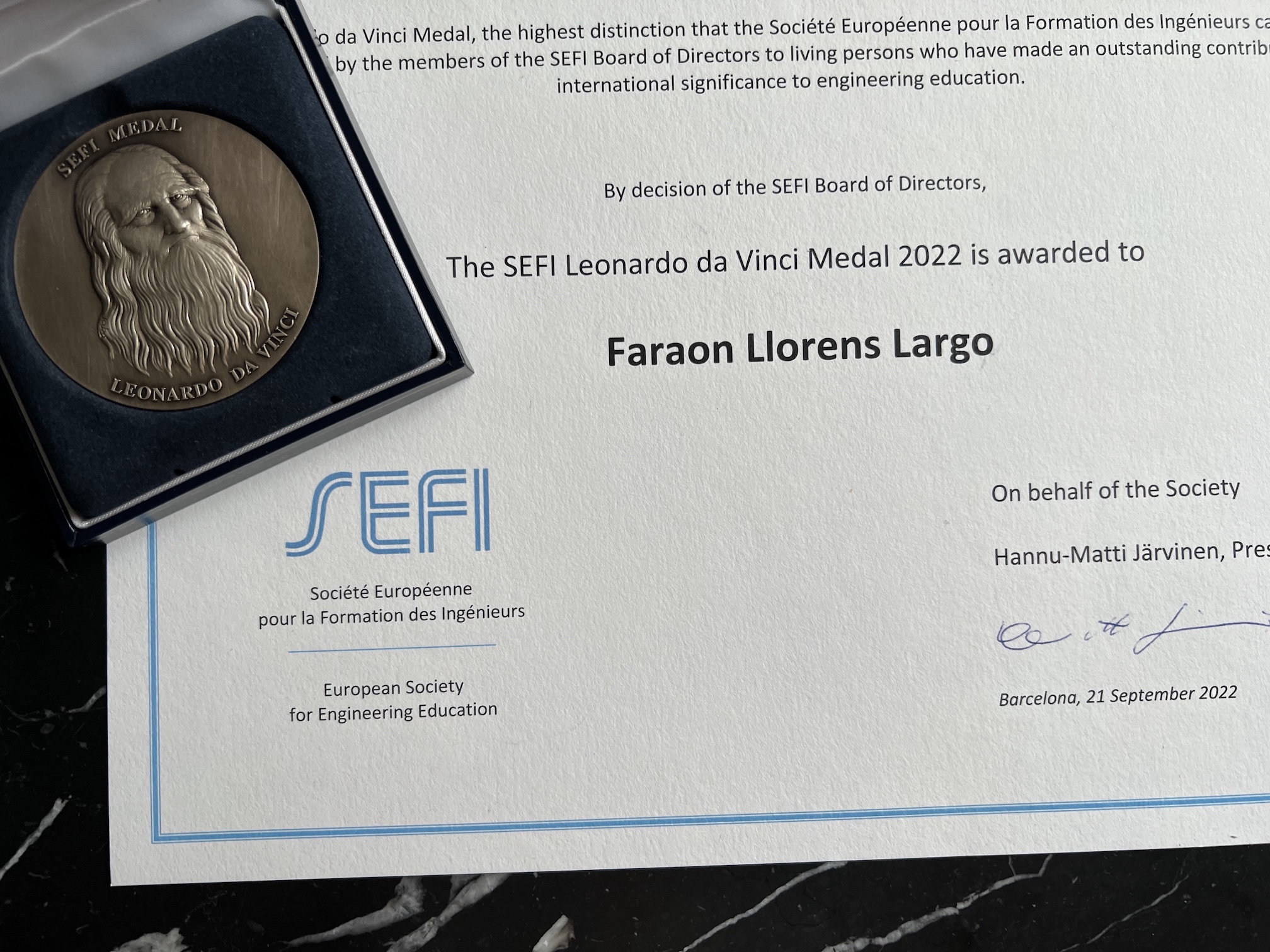 Aquest premi es va fer lliurar en el marc del congrés anual de la SEFI, que va tenir lloc del 19 al 22 de setembre a Barcelona, organitzat per l’ICE de la Universitat Politècnica de Catalunya – Barcelona Tech.