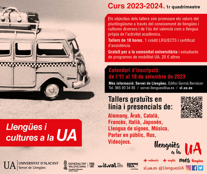 Més informació i matrícula: https://sl.ua.es/va/tallers-de-llengues/2023-2024/tallers-de-llengues-primer-quadrimestre-2023-2024.html