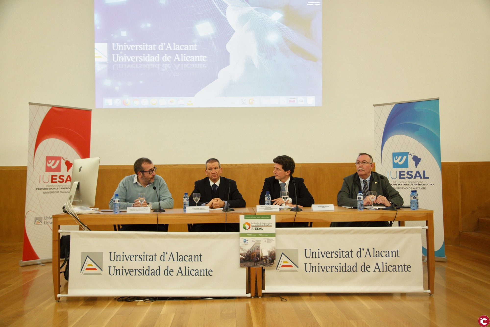 A lacte de presentació ha assistit el vicerector de Relacions Internacionals de la UA, Juan Llopis Taverner, en representació del rector. Javier Vidal Olivares, secretari de lInstitut, ha fet les vegades damfitrió, i ha disculpat labsència del director, Roque Moreno Fonseret. Vidal ha assenyalat que lorganització de les Jornades ha suposat un desafiament. El secretari de lIUESAL ha destacat la importància de la creació daquest Institut, ja que lequip de govern de la UA té un espai dedicat a Iberoamèrica, amb idea de generar sinergies. En aquest mateix sentit, José Vicente Cabezuelo, director de Campus Iberoamericà de la UA, ha reconegut laposta ferma de la Institució des de fa molts anys per Iberoamèrica; aposta que sha reafirmat, des de fa uns dos anys, amb la creació de Campus Iberoamericà. Cabezuelo ha definit lobjectiu de lòrgan que lidera i que és coordinar, desenvolupar i impulsar totes les accions que en làmbit de lEducació Superior es puguen desenvolupar, i ha afegit que és important que cerquem sinergies, per a aconseguir el projecte duna relació acadèmica amb Iberoamèrica.