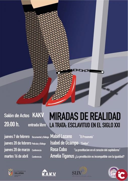 La proyección del documental “El proxeneta. Paso corto y mala leche” y posterior diálogo con su directora, la periodista Mabel Lozano, el próximo jueves 7 de febrero a las 20 horas en la Casa de la Cultura de Villena, será el punto de inicio del ciclo: “Miradas de realidad. La trata: esclavitud en el siglo XXI”. Organizado por la Sede de la UA en Villena, la concejalía de Cultura del Ayuntamiento y la Casa de la Cultura en la localidad, el ciclo abordará esta problemática social en cuatro sesiones que constarán de proyecciones de documentales y películas con debate posterior y dos conferencias.