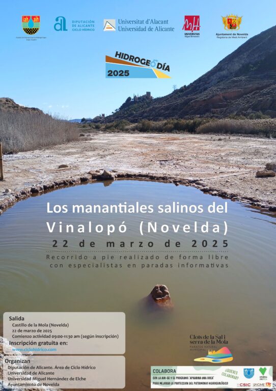 La Universitat d’Alacant (UA), junt amb la Universitat Miguel Hernández d’Elx (UMH) i la Diputació Provincial d’Alacant, presenta una nova edició de l’Hidrogeodia amb una ruta pels voltants de Novelda. Concretament, es durà a terme un itinerari al paratge natural municipal Clots de la Sal i Serra de la Mola.