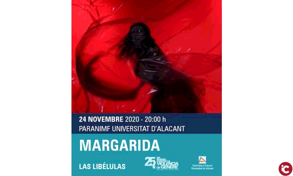 Demà dimarts 24 de novembre, vespra del Dia contra la Violència de Gènere (25N), el Paranimf de la UA acollirà a les 20 hores la representació de lobra Margarida, a càrrec del grup valencià Las Libélulas. Lobra, escrita per Rubén Rodríguez Lucas, va ser guardonada amb el primer premi Federico Garcia Lorca de la Universitat de Granada lany 2019 al millor text dramàtic.