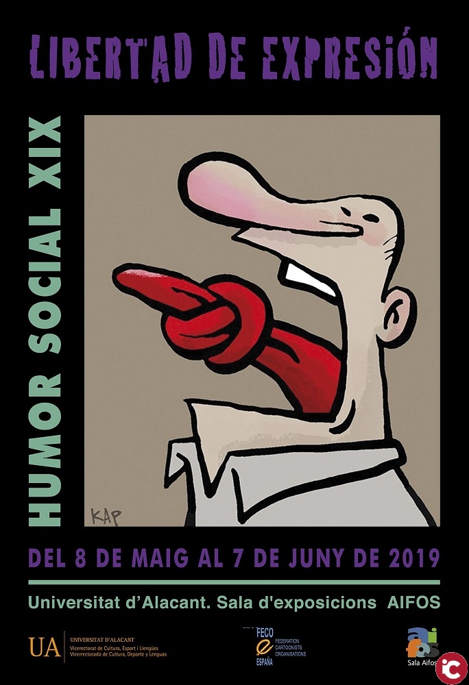 Comença la tradicional Jornada dHumor Social de la UA, que enguany arriba a la dinovena edició, amb lobertura de lexposició «Llibertat dexpressió», demà dimecres, 8 de maig, a la Sala Aifos del Campus (Facultat de Filosofia i Lletres III). La mostra, comissariada pel dibuixant Enrique Pérez, estarà oberta al públic fins al 7 de juny, gràcies al suport de la Federació de Caricaturistes dEspanya (FECO-Espanya).