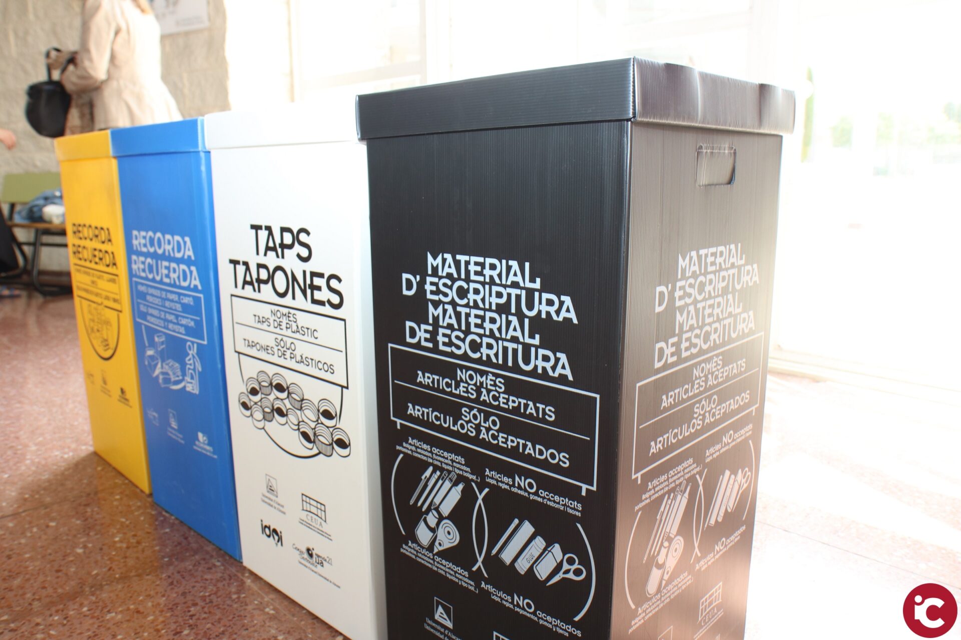 La Universitat dAlacant fa un pas més en la seua aposta per a esdevenir un espai més sostenible a través del projecte Reciclar és bell que impulsa la xarxa docent Investigació+Docència+Innovació i que sha proposat instal·lar nous contenidors de reciclatge en els diferents edificis del campus universitari. La iniciativa facilitarà laprofitament del material descriptura dun sol ús a través del reciclatge daquest en uns nous contenidors que sestan instal·lant a la Universitat.