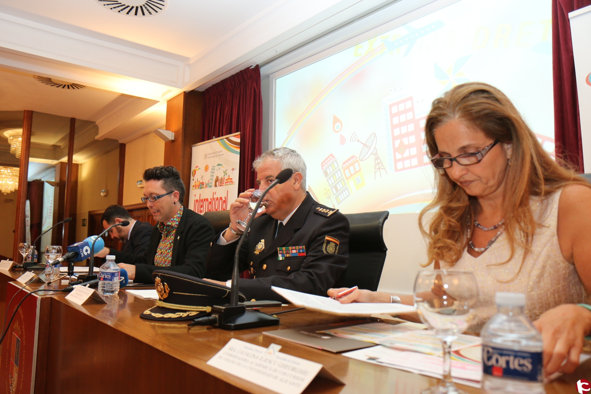18 de mayo de 2016.- La Universidad de Alicante ha presentado esta mañana los Cursos de Verano “Rafael Altamira” con una oferta basada en la incorporación de importantes novedades y una clara apuesta por la internacionalización. El vicerrector de Cultura, Deportes y Política Lingüística de la UA, Carles Cortés, ha dado a conocer las líneas prioritarias de los cursos ofertados en esta edición 2016, entre las que ha destacado la oferta de cursos de marcado carácter profesional y contenido aplicado, el aumento de la transversalidad de la formación tecnológica, el medio ambiente como tema central y la puesta de manifiesto de los enfoques de género. El vicerrector ha estado acompañado por la coordinadora académica de los cursos Catalina Iliescu, Ignacio Galli, responsable de formación del ICALI, y Alfonso Cid, comisario Jefe Provincial de Alicante del Cuerpo Nacional de Policía.