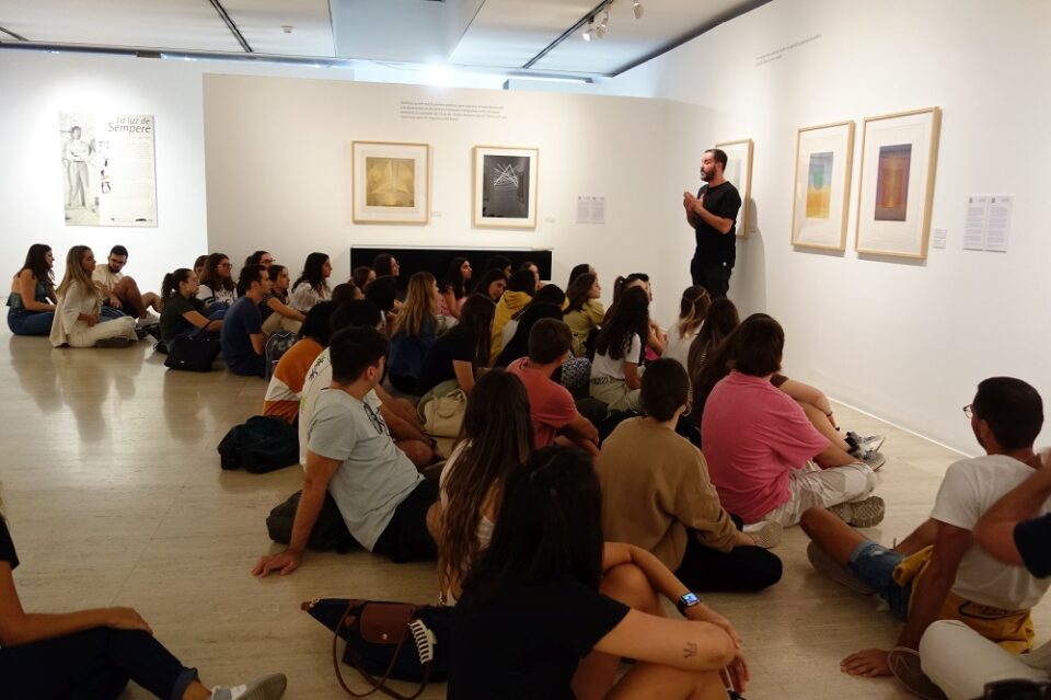 «La mostra es completa amb un taller didàctic, dirigit a l’alumnat d’infantil, primària, secundària, batxillerat i universitaris, a més d’altres activitats que concretarem al llarg del curs» detallen els organitzadors. «Abans de fer la visita-taller ‘La llum de Sempere’ amb alumnat de col·legis i instituts, el taller s’ha provat amb alumnat universitari de l’assignatura de Didàctica de l’Expressió Plàstica del Grau d’Educació Infantil i Primària de la UA, la qual cosa ha permès testar la idoneïtat de materials i processos creatius», hi afigen. El taller s’impartirà des d’avui 17 d’octubre fins a l’11 de maig del 2023, amb un enfocament eminentment participatiu, tant en l’explicació en sala, sempre dialogada, com en el taller pròpiament dit. L’activitat permetrà experimentar amb les possibilitats de l’art òptic i l’abstracció geomètrica, reuneix línies, colors i transparències amb temes com el paisatge, la geometria, la memòria o la literatura, com va fer Sempere en el seu moment.