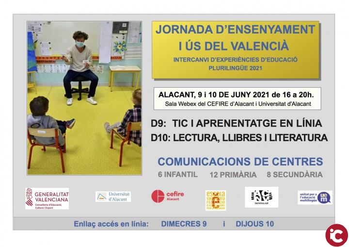 La Universidad de Alicante, a través de su Servicio de Lenguas y la Facultad de Educación, y el CEFIRE organizan la XII edición de la «Jornada d’ensenyament i ús del valencià en los centros educativos. Intercanvi d’experiències d’educació plurilingüe 2021», un encuentro online que tendrá lugar los próximos días 9 y 10 de junio. La jornada está coorganizada con la Consellería de Educación y La Cívica-Escuela Valenciana.