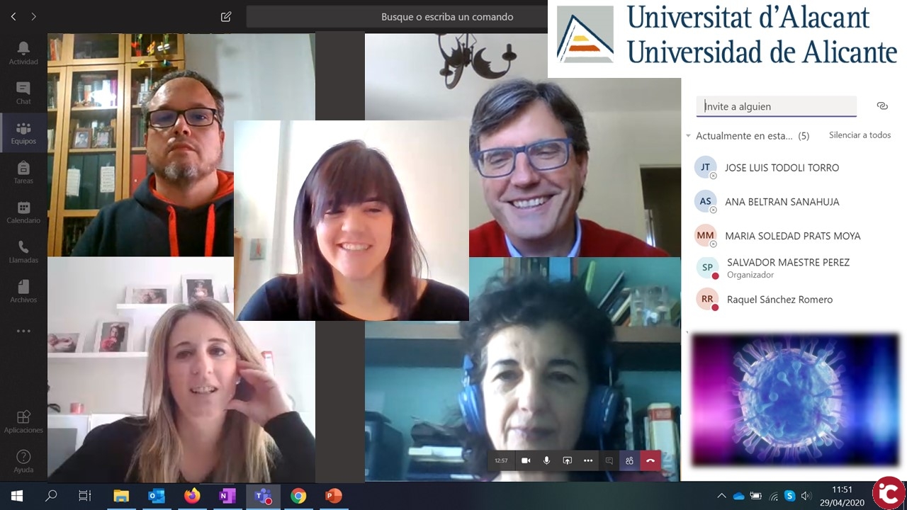 Los estudios se están efectuando en colaboración con miembros del grupo de investigación de Análisis de Alimentos, Química Culinaria y Nutrición, de tal forma que el equipo de investigación cuenta con la experiencia del profesor Salvador Maestre Pérez y de las profesoras Soledad Prats, Raquel Sánchez y Ana Beltrán. Ahora, con la llegada del coronavirus SARS-CoV-2, el equipo ha centrado esta línea de investigación en la desinfección tanto de población bacteriana como de virus sobre todo tipo de superficies, sea plásticos, metales, tejidos, etcétera. Para continuar en esta línea de trabajo y enfocados estos días en los aspectos de la reducción del coste, la seguridad y las características del producto, han obtenido financiación del Vicerrectorado de Investigación y Transferencia de Conocimiento de la UA, mediante la Convocatoria propia urgente de la UA frente al COVID-19 del 1 de abril.