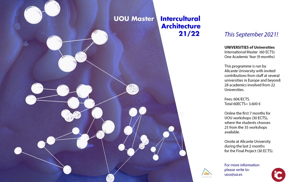 Quina mena darquitecte vols ser? La resposta a aquesta pregunta és la que resol el nou màster que començarà a impartir la Universitat dAlacant al setembre. Estudis Arquitectònics Interculturals, títol propi, té l origen en University of Universities (UOU), el projecte de docència internacional en línia desenvolupat pels professors de lassignatura de Projectes Arquitectònics de la UA, Javier Sánchez Merina i Joaquín Alvado, sorgit durant el confinament fa ara un any.