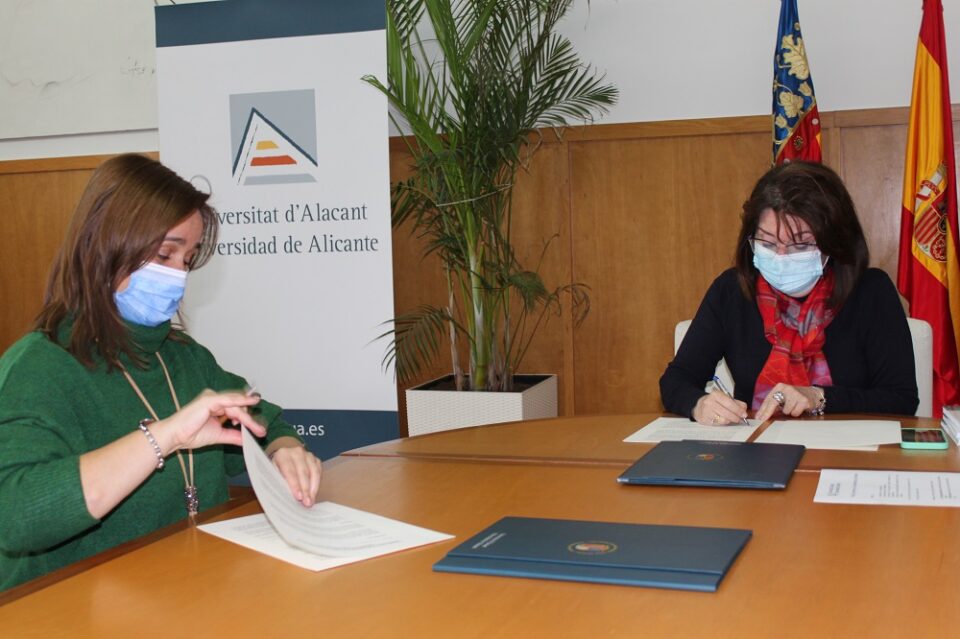 La rectora Amparo Navarro i l’alcaldessa Isabel López han renovat el conveni aquest matí al campus alacantí.