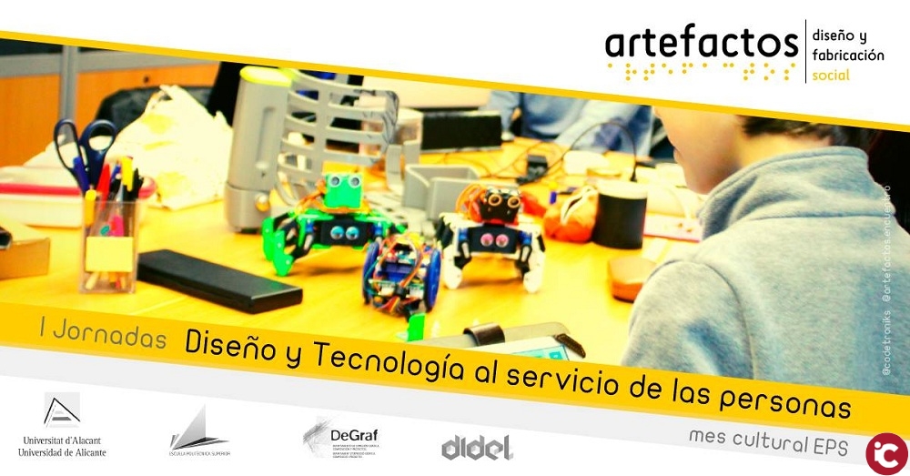 [artefactos] es un proyecto de investigación multidisciplinar que busca generar soluciones alternativas y accesibles en código abierto para la autonomía y calidad de vida de personas con diversidad funcional, mediante la confluencia del diseño colaborativo, la tecnología y la innovación. Se trata de una iniciativa social impulsada por el grupo de investigación Diseño en Ingeniería y Desarrollo Tecnológico (DIDET), el Departamento de Expresión Gráfica, Composición y Proyectos y la Escuela Politécnica Superior de la Universidad de Alicante.