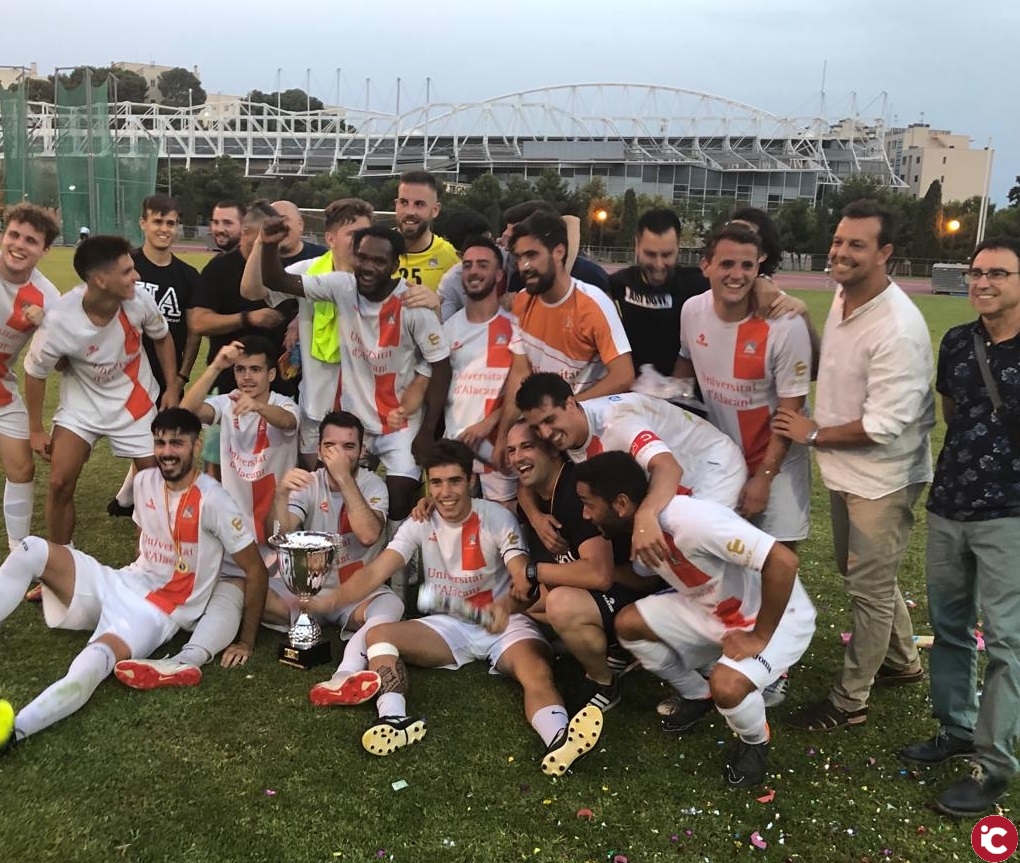 L’equip de futbol masculí de la Universitat d’Alacant es va proclamar el passat dissabte campió de la Copa Sant Pere de futbol amateur, que en aquest 2019 ha fet la seua 74a edició, en vèncer l’equip Intercity- La Voz per un ajustat 1 a 0, obra de Jony en el minut 80. Amb aquest triomf, l’equip universitari aconsegueix la cinquena Copa Sant Pere des de la primera que la va aconseguir, l’any 2006, i a les quals cal sumar dues finals perdudes en el mateix període de temps.