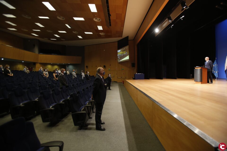 Durante el acto, que se ha realizado sin público, se ha guardado un minuto de silencio por las víctimas de la COVID-19 y con un recuerdo especial para Olivia Manzanaro, trabajadora de la universidad fallecida al inicio de la pandemia