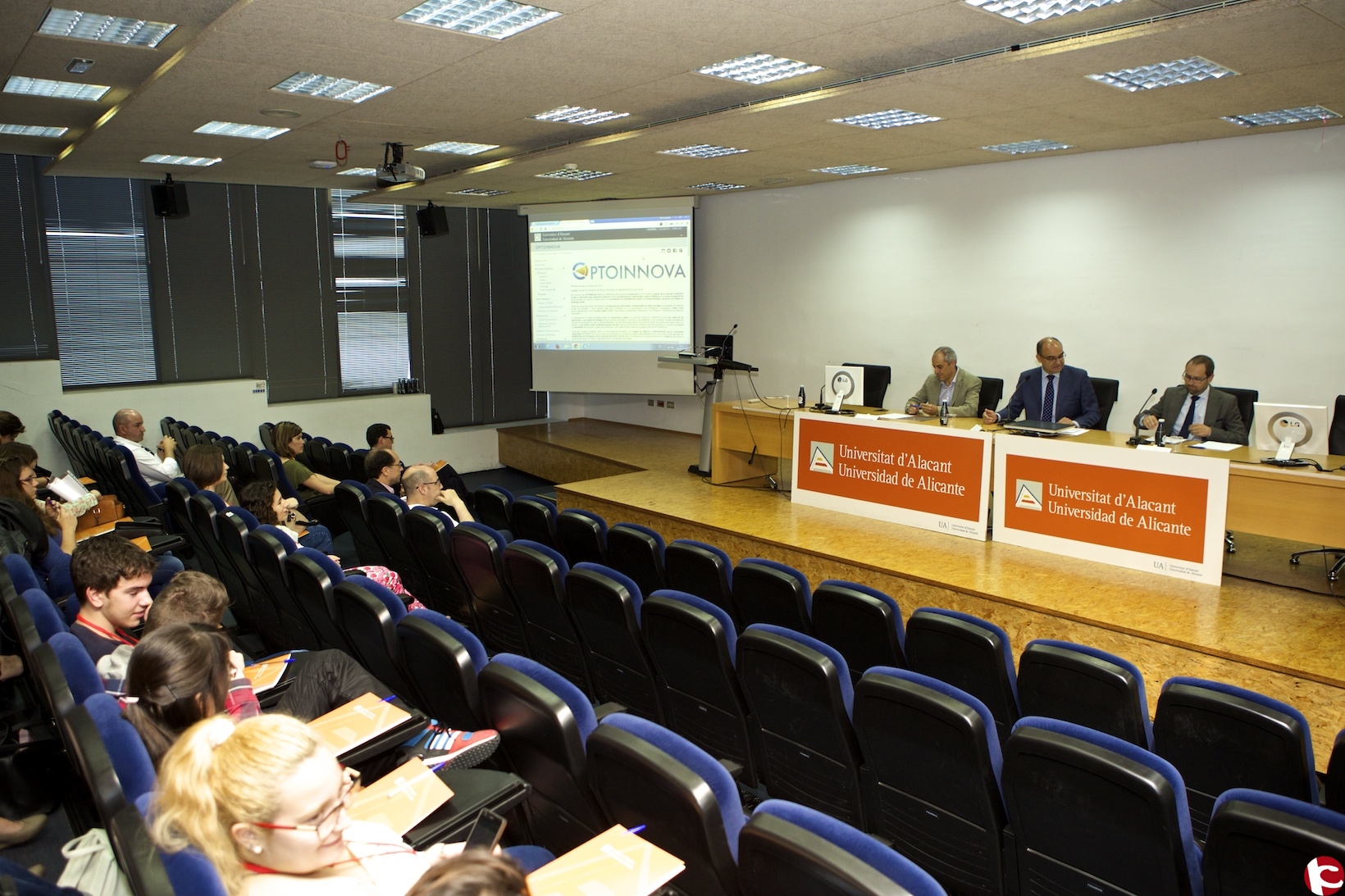 OptoInnova 2016 con 250 inscritos se ha convertido en un encuentro de referencia para estudiantes, profesionales y empresas del sector del sector óptico y oftalmológico. Durante toda la jornada, la UA cuenta con expertos de gran prestigio y casi una veintena de instituciones y empresas nacionales y multinacionales, así como las cinco clínicas oftalmológicas de referencia de la provincia de Alicante.