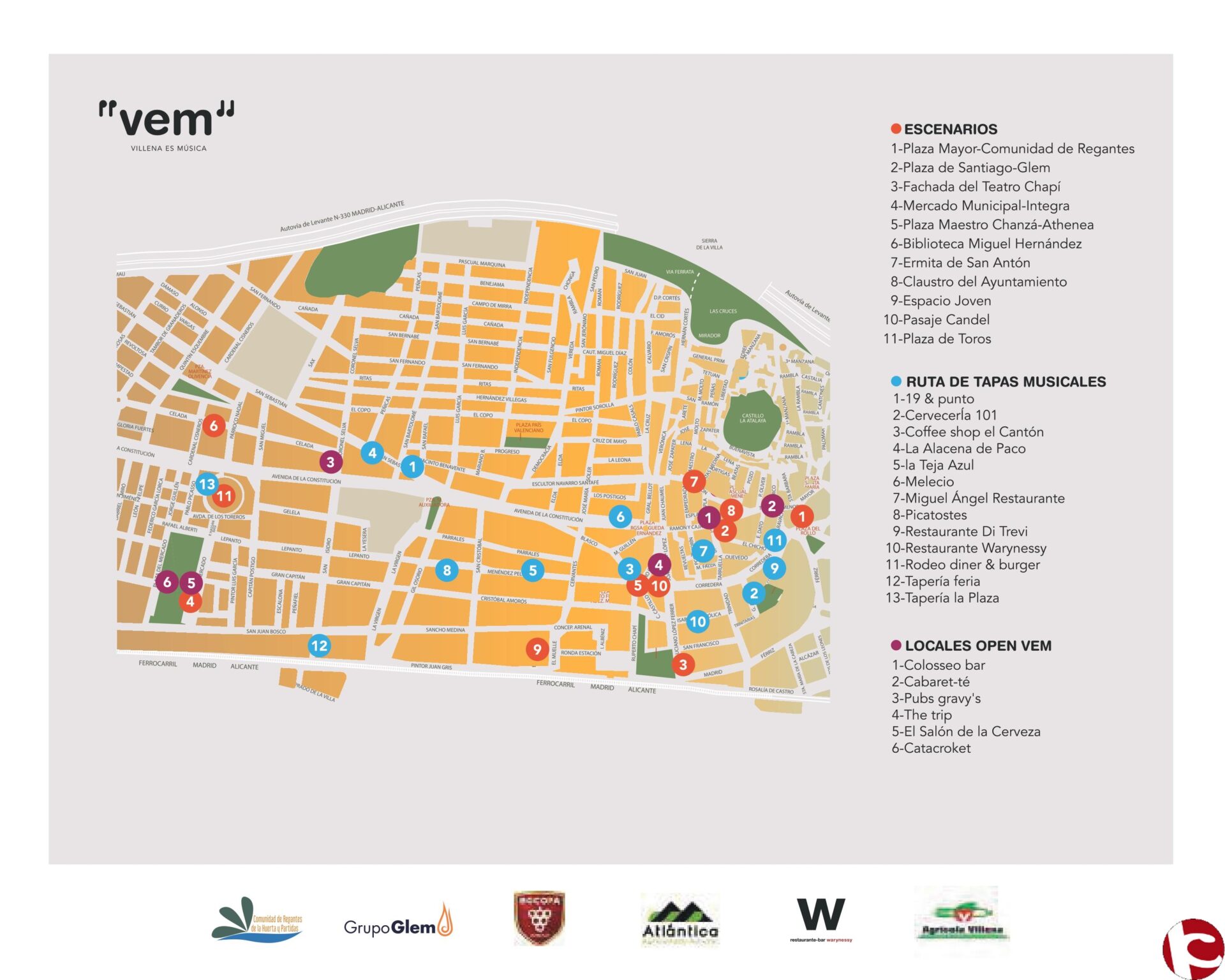 VEM, es un conjunto de actividades musicales que se desarrollarán de manera simultánea desde las 8 de la mañana del sábado 18 de junio hasta las 8 de la mañana del domingo 19 de junio. Durante este tiempo todas las formaciones musicales y corales de la ciudad, los alumnos y alumnas del Conservatorio, los grupos de música en sus diferentes estilos, los profesionales y los aficionados participarán en el evento que se desarrollará en diferentes espacios del casco urbano. Se estima que más de mil personas, entre músicos y voluntarios, participarán el 18 de junio en VEM.