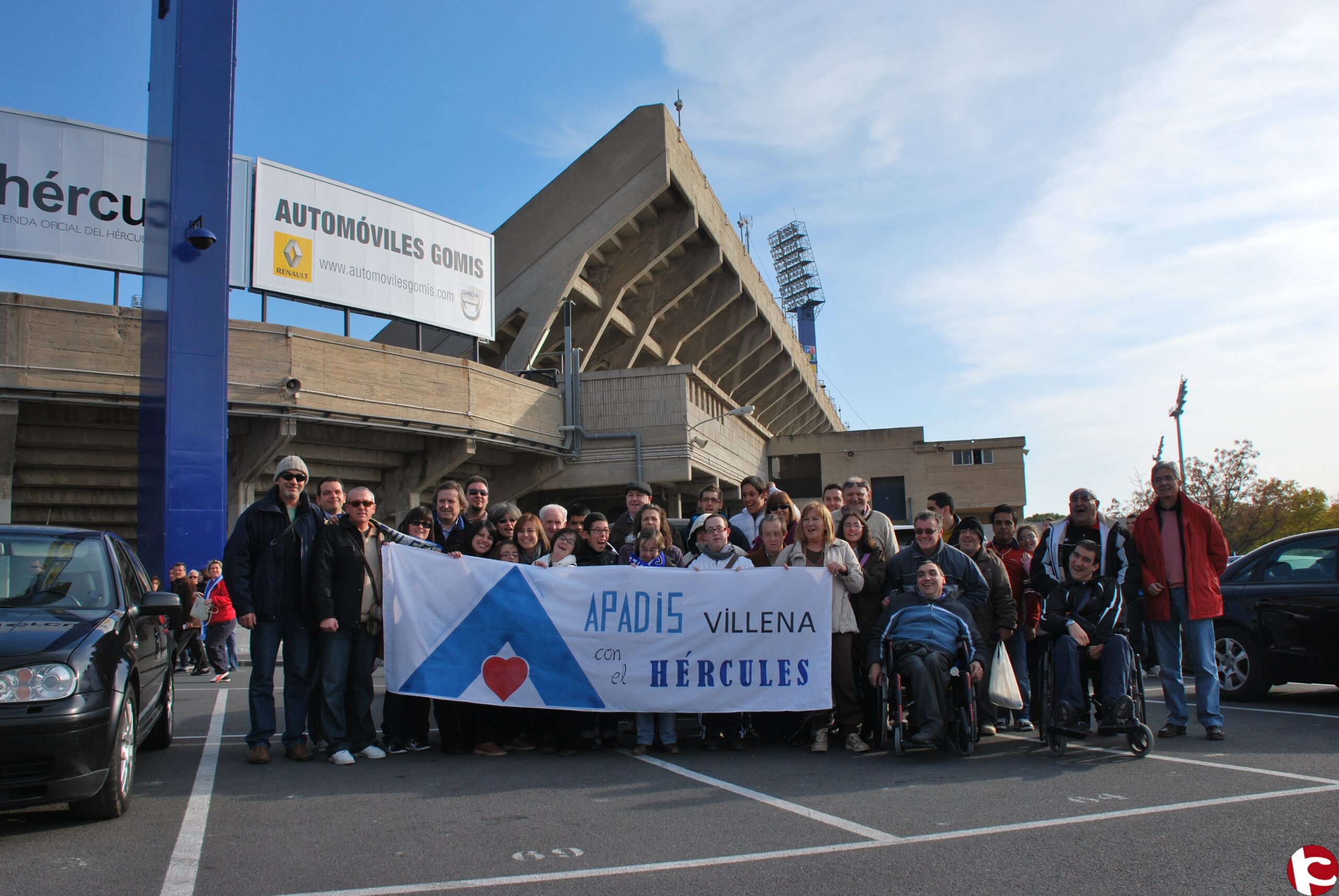 El pasado domingo día 13, un grupo de APADIS formado por cuarenta personas(usuarios, familiares, directivos y profesionales)se trasladó a Alicante, invitados por la directiva blanquiazul para disfrutar del encuentro del Hércules contra el Zaragoza. Aunque el partido comenzó con un gol en contra, pudimos disfrutar y compartir la alegría de las gradas con la remontada final del dos a uno. Agradecer al Hércules, este gesto hacia los usuarios de APADIS que pasaron una tarde inolvidable.(