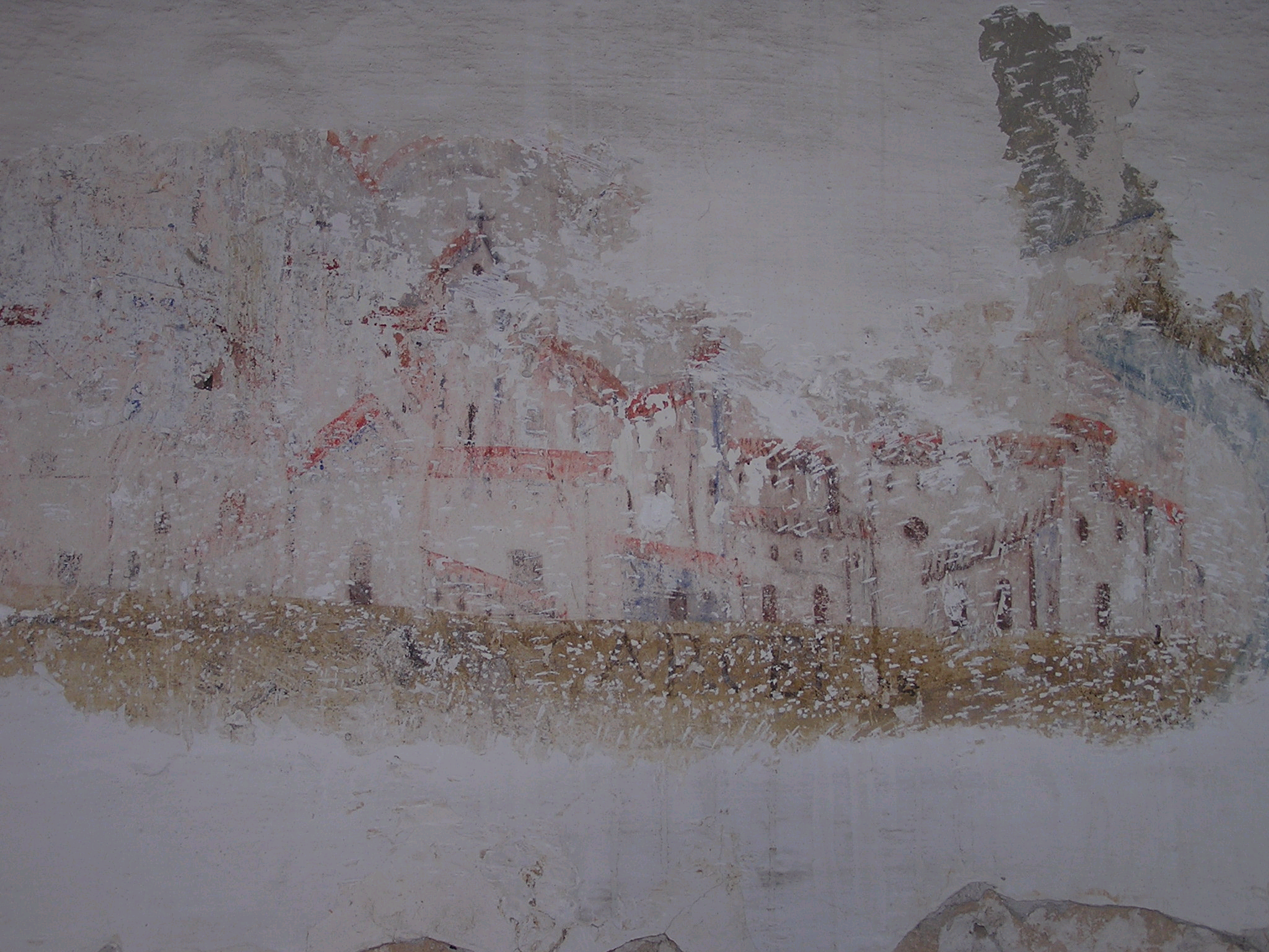 La empresa Tratteggio Restaura, está en la recuperación de las pinturas. Según nos relata, Virtudes y Mª José, hasta el momento se desconoce su fecha. Una de ellas se puede apreciar el Castillo de la Atalaya y tres torres, estas podrían pertenecer a la Iglesia de Santiago, Santa María y la Torre del Orejón. Además, hay inscripciones referidas a una cárcel junto a a la Iglesia de Santiago.