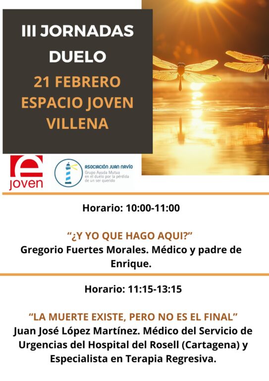El Espacio Joven de Villena será escenario este próximo sábado, 21 de febrero, de las III Jornadas sobre el Duelo, una iniciativa organizada por la Asociación Juan Navío – Grupo de Ayuda Mutua en el duelo por la pérdida de un ser querido, en colaboración con Espacio Joven.