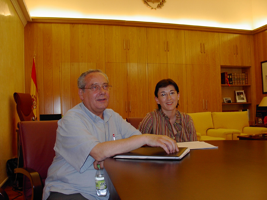 Foto: El portavoz del equipo de gobierno, formado por el Partido Socialista Obrero Español y la Coalición Los Verdes Izquierda Unida, Jesús Santamaría y la alcaldesa de la ciudad, Vicenta Tortosa