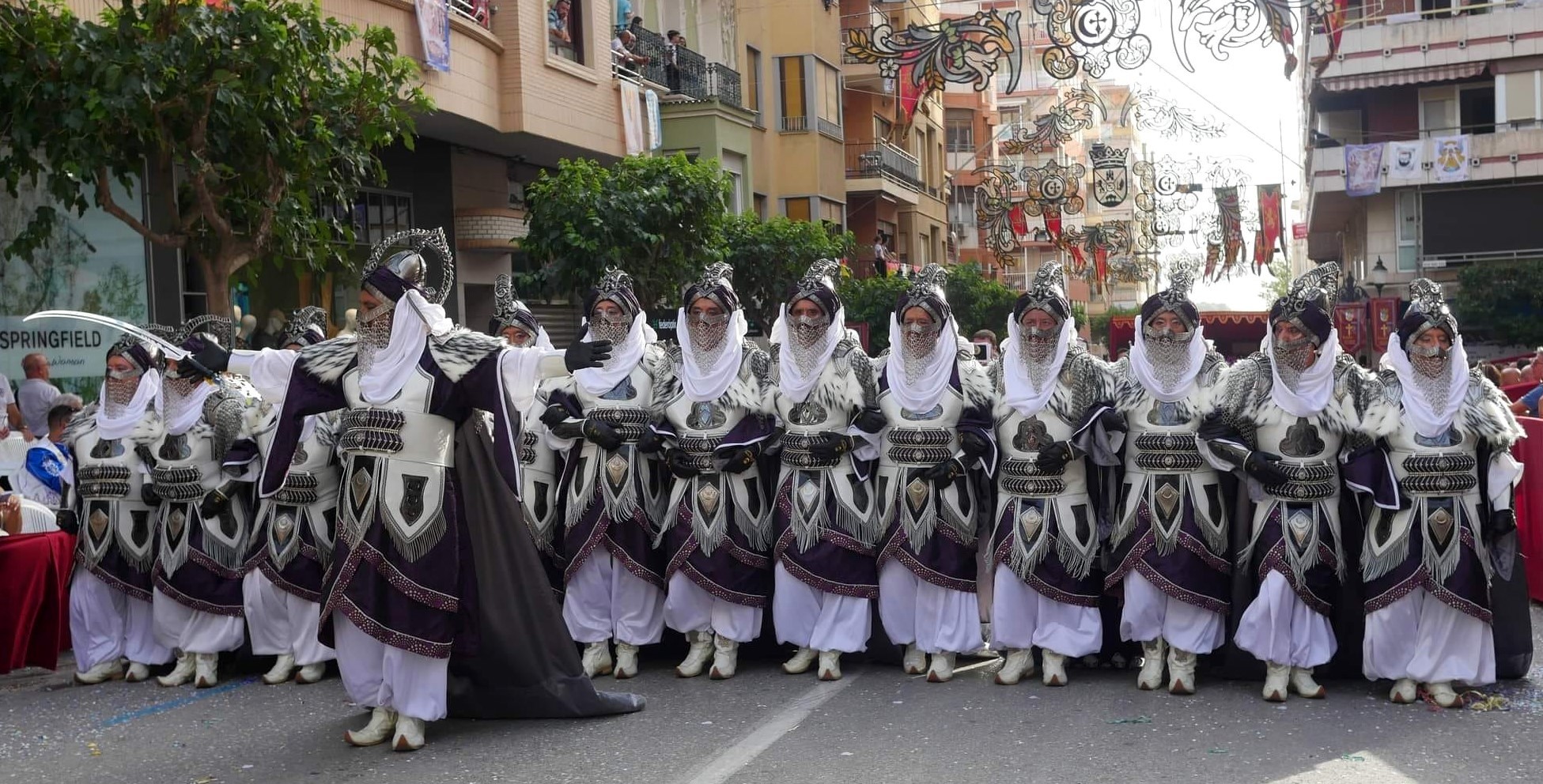 “Por lo que me dices de nuestro traje 2024 va a ser, una vez más, un traje diferente nunca visto, espectacular y con nuestra particular idiosincrasia que nos diferencia de los demás. Sin dar muchos detalles… los colores que vamos a utilizar son el cobre, plata, oro y sobre este último bordados de plata. Y del conjunto yo destacaría los metales que estamos viendo en Italia y el turbante; diferente por diseño, porte, estilo, colores, telas, confección y alguna cosa más que reservo hasta fiestas para que sea el público el primero que lo vea. Almorávides busca siempre nuevas ideas, nuevos colores, nuevas telas que no estén vistas y que cuando los vean, nosotros seamos los que primero los saquemos a la calle”.