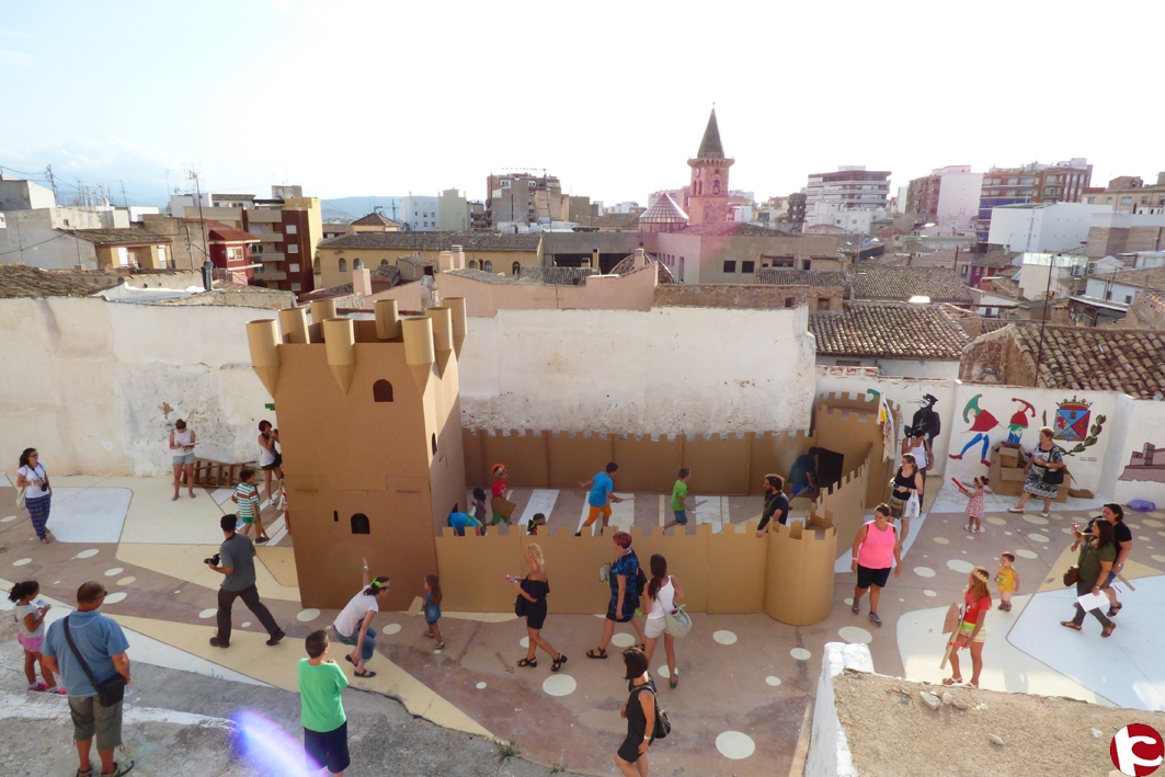 Niños del Ensanche y el centro histórico de Villena conquistaron ayer una fortaleza de cartón recuperado de más de cuatro metros de altura, realizada por ARAE Patrimonio para niños y Que viene el lobo! con motivo de elCasc 2015