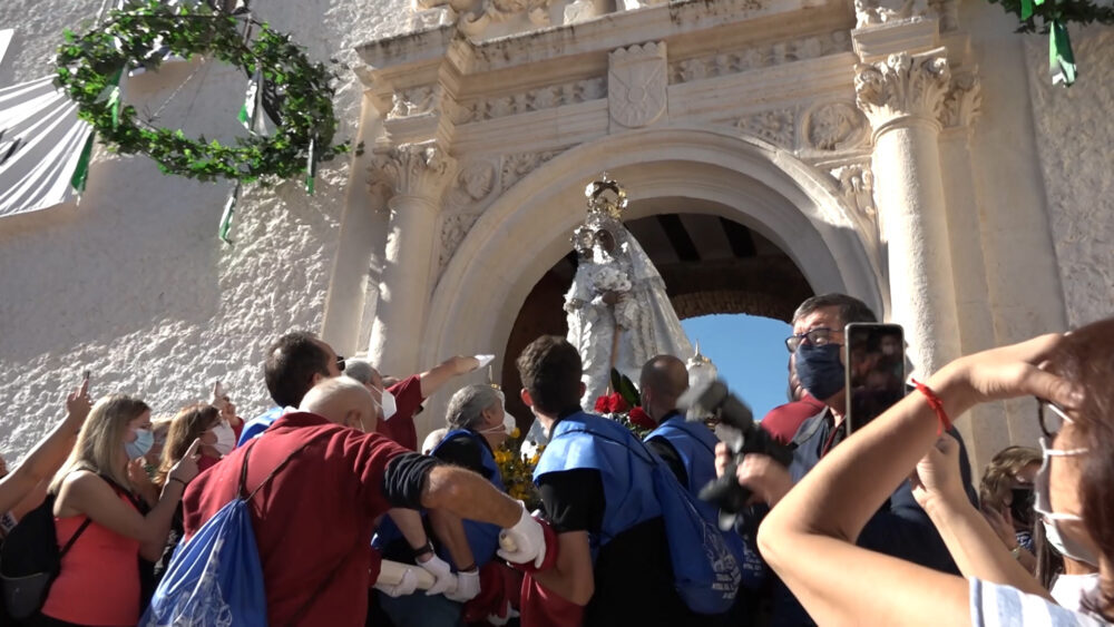 Acto seguido, se inició el acompañamiento hasta el Santuario siendo portada única y exclusivamente por el grupo de portadores que posee la Junta de La Virgen.