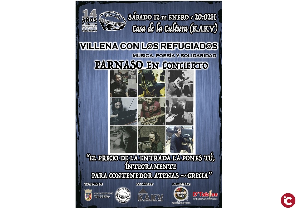 Para llevar a cabo esta nueva iniciativa, la organización ha contado también con la colaboración de la Casa de Cultura KAKV y a la participación de Colosseo Bar y D, Tapas-Villena! Desde la organización recuerdan que ésta velada se celebrará en la Cafetería de la Casa de Cultura de Villena a partir de las 20.02h, y servirá como apertura al décimo-cuarto año consecutivo de programaciones de Música, Denuncia Social y Solidaridad de dicho colectivo.
