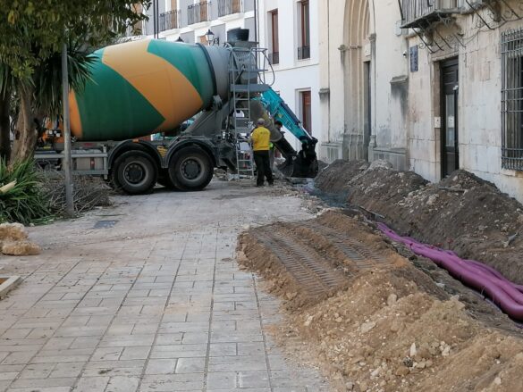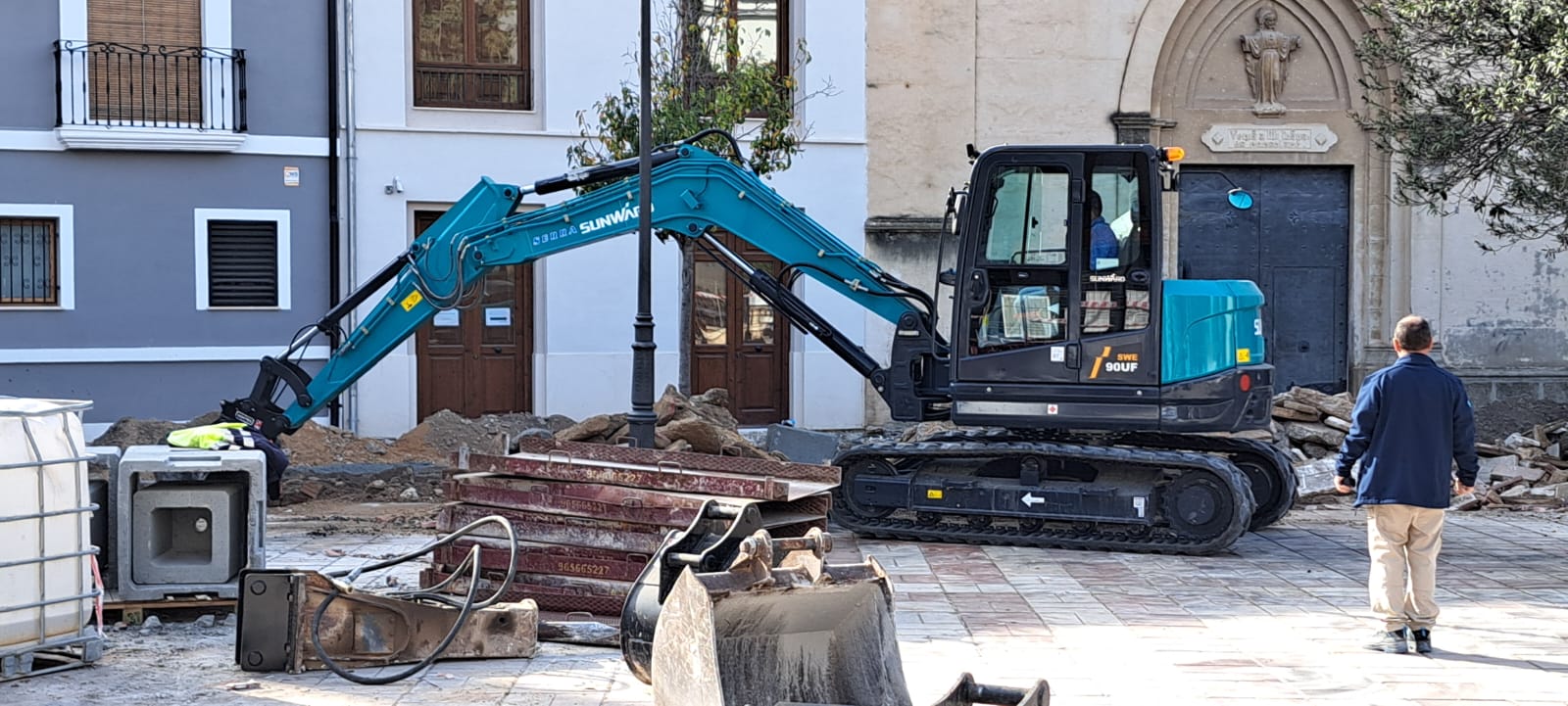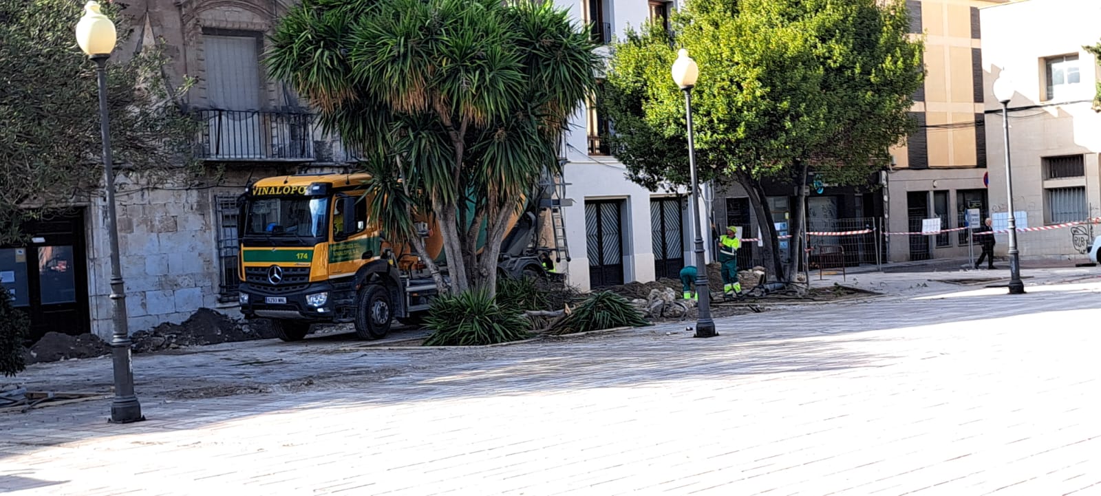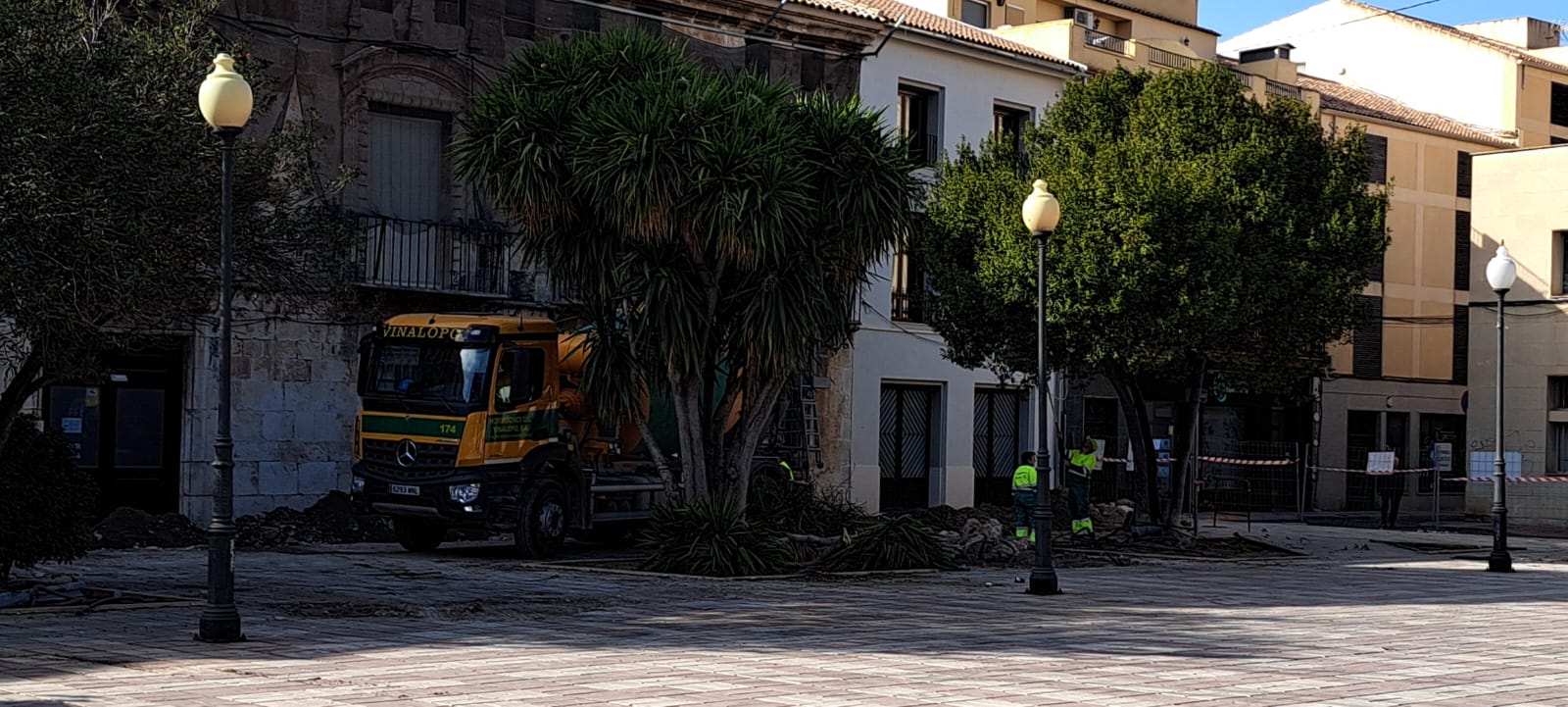 Avanzan las obras de la plaza de Las Malvas con las tareas de construcción de una losa de protección contra las humedades en las fachadas