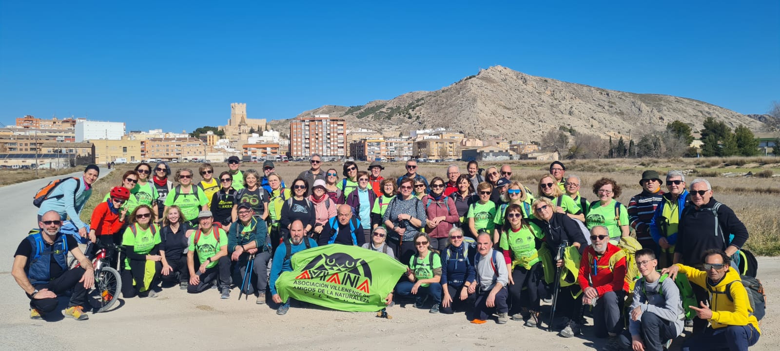 El primer domingo de febrero a las 7 de la mañana, un grupo de 60 socios y socias de Aviana nos dirigimos en autobús hasta el pantano de Elda, lugar de comienzo de la travesía de 23 kilómetros programada por dos de nuestras compañeras que, a su vez, pertenecen a la Asociación de Villena del Camino de Santiago. Ellas nos han hecho partícipes y nos han ilustrado con sus explicaciones, acerca de esta etapa del Camino de Santiago del Sureste que transcurre desde Elda a Villena.