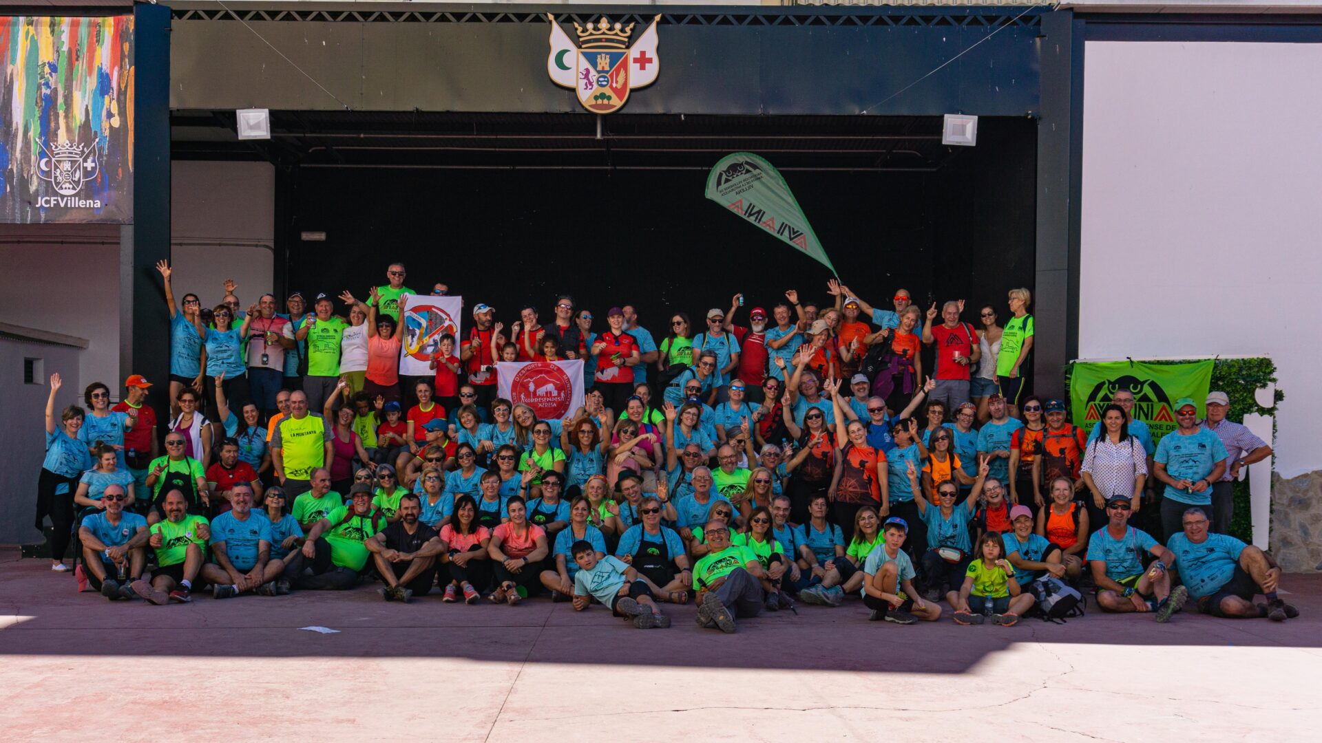 A las 8:00 h de la mañana nos dimos cita en la Plaza de Santiago para el control de asistencia y entregar la camiseta correspondiente. Se ofreció un suculento desayuno y a las 9:00 h comenzó el recorrido por el casco viejo de la ciudad, Plaza de Santiago, subida Santa Bárbara, alrededores del Castillo de la Atalaya, para a través del PR CV 312 llegar al Collado de la Mina de los Colores. Una vez allí nos dirigimos al depósito de agua de los bomberos donde se ha procedido, por parte de Mayka, delegada de Medio Ambiente de FEMEC, a la puesta en libertad de un magnífico ejemplar de un BÚHO, traído por el agente de Medio Ambiente hasta el lugar indicado, pues se celebraba el Día de las Aves. Ha sido una experiencia muy emotiva ver cómo se devuelve a la naturaleza, su hábitat natural, a esta ave. Continuamos por una pista hasta ascender a la cima que nos conduce al vértice geodésico y a las antenas, dedicando un tiempo para el almuerzo. Después de reponer fuerzas, por la variante del PR CV 312 regresamos a la población terminando la ruta en la Plaza de Santiago, donde en el Patio Festero de la Junta Central de Fiestas, hicimos entrega de los recuerdos y trofeos a cada uno de los participantes y Clubes correspondientes, contando con la presencia de Maite Gandía, concejal de Deportes del M.I. Ayuntamiento de Villena, así como de los representantes de la FEMECV.