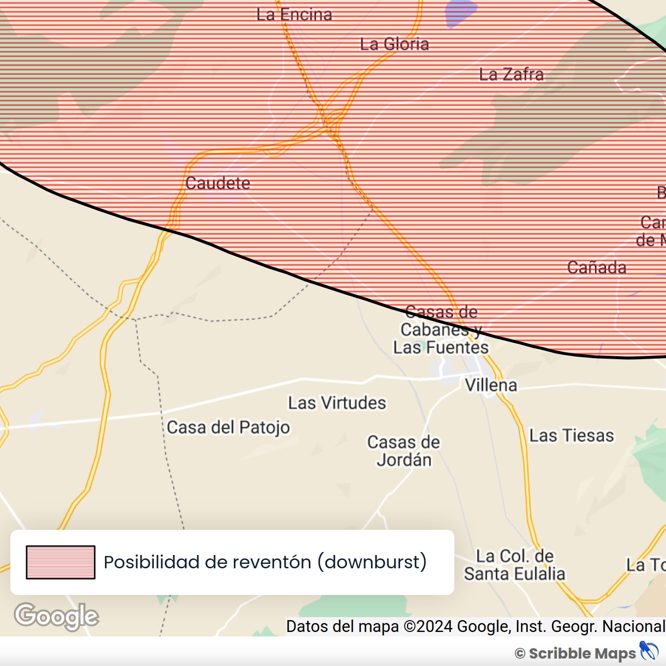 Los servicios meteorológicos han detectado riesgos de reventón término y posibilidad de precipitaciones de granizo en el término municipal de Villena hasta la tarde de hoy. En principio, el riesgo de fuertes vientos que generen los reventones térmicos que ha sufrido Villena en otros momentos, se establece al norte del casco urbano, en el límite de Casa Cabanes y Las Fuentes. En el caso del granizo, en un nivel alto se afecta a gran parte del término municipal, incluida la ciudad de Villena.