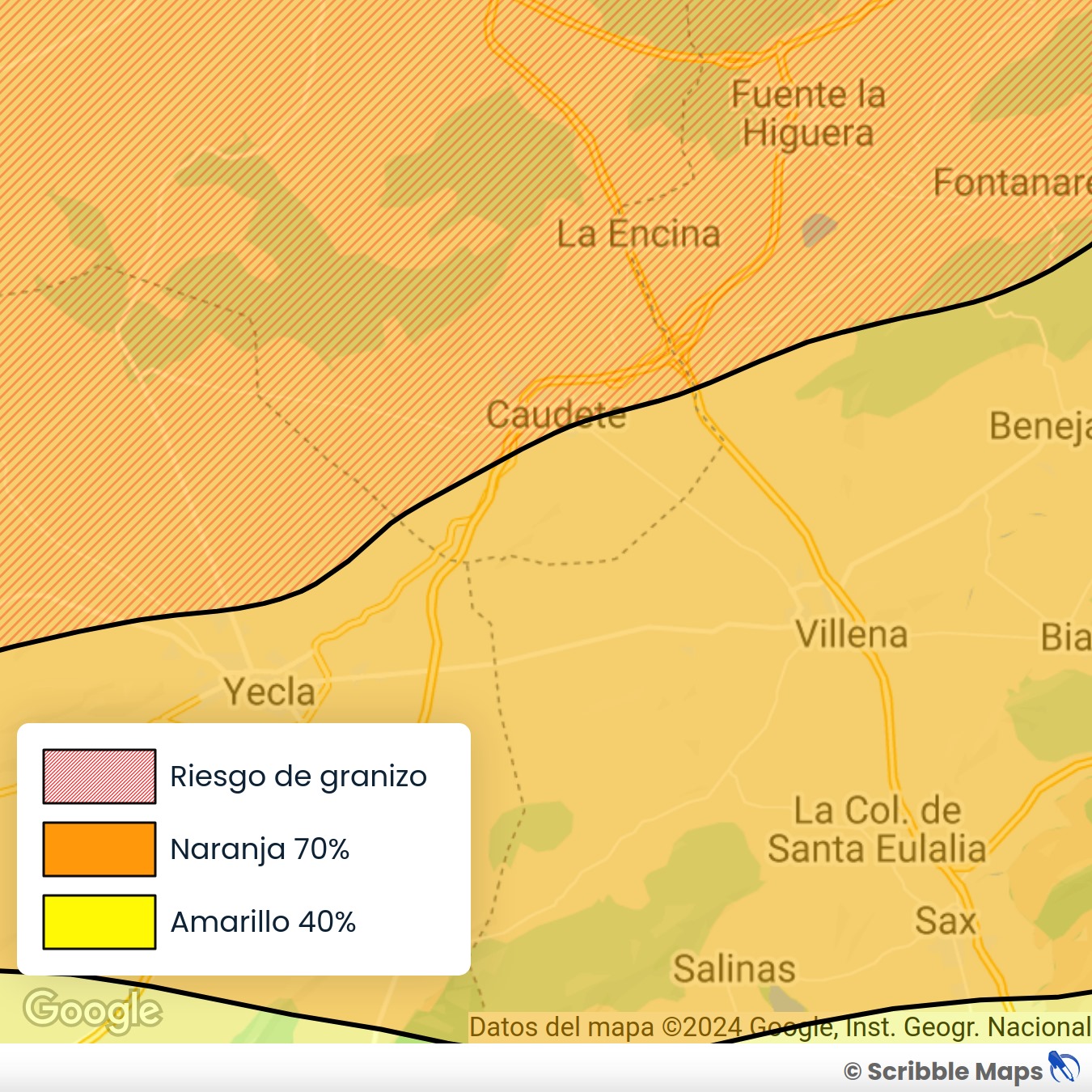 La previsión más dura para estas horas se ha fijado en el término de los municipios murcianos colindantes con Villena, y al sur de la provincia de Albacete, “pero tenemos experiencia en que las distancias para estos fenómenos no suelen ser matemáticas, y es importante estar prevenidos, sin alarmismos, pero sin bajar la guardia”.