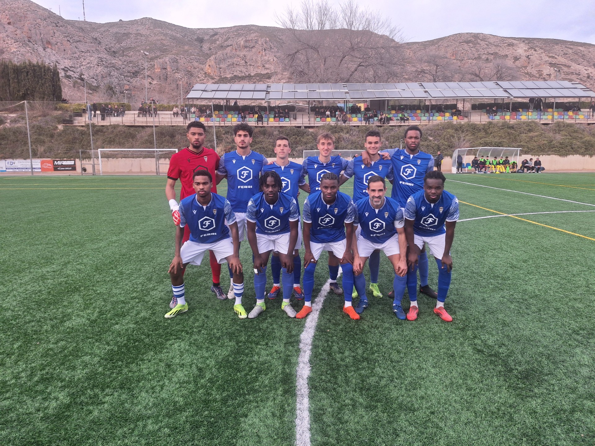 El equipo inicial del Villena lo formaron Thiago, Adnan, Keanu, Natha, Labros, Vicente Verdejo, Ajani, Hicham, Garvin, Luca y Sam jr. El arbitro enseñó cartulinas amarillas a Luca y Natha.