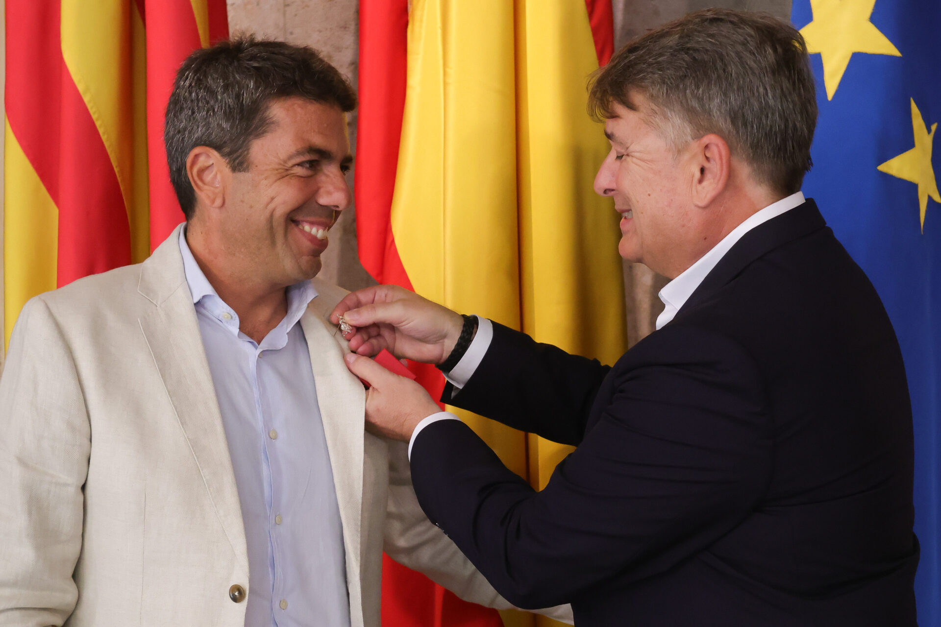 Para finalizar la visita Paco Rosique ha impuesto la insignia de plata de la Junta Central de Fiestas al Sr Presidente de la Generalitat Valenciana antes de proceder a realizar una fotografía como recuerdo de la visita.