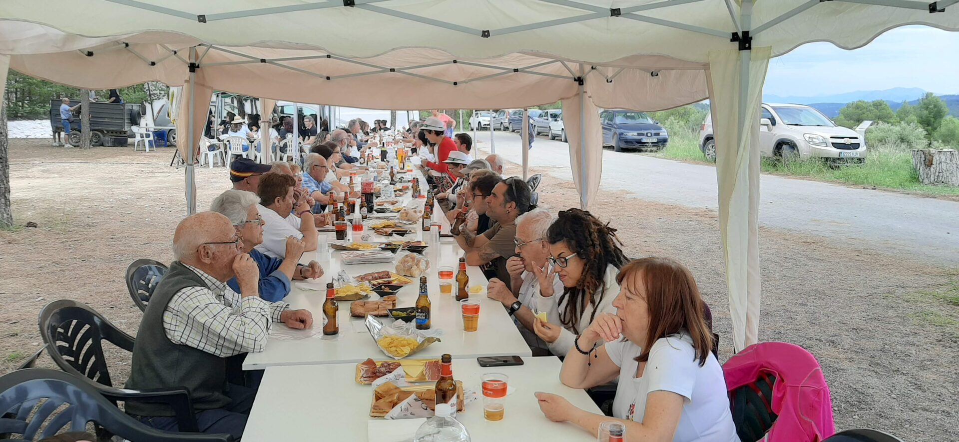 Más tarde, y mientras se terminaba de preparar la comida preparada para la ocasión, vivimos los que posiblemente han sido los mejores momentos de este año, con momentos espontáneos y de improvisación musical de la mano de la rondalla del grupo de coros y danzas, acompañados con las voces e instrumentos de algún que otro simpatizante de nuestra asociación, sirviendo la música como nexo de hermandad y unión entre los asistentes. Este ambiente de alegría y diversión no fue, para nada frenado por la amenaza de lluvia, ni siquiera por la inapreciable precipitación que llegó a caer. Es más, esta anecdótica lluvia ayudó a refrescar un poquito el ambiente del mediodía.