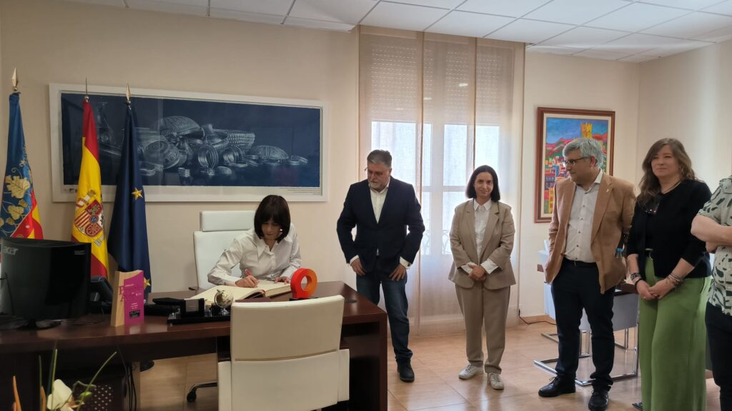 Ambas, acudieron a la firma del Libro de Honor del Ayuntamiento y visitaron posteriormente las instalaciones de una de las empresas vinculadas a este nuevo modelo de industria, como es TexAthenea, que en la actualidad es una de las instalaciones que cuenta con baterías para el almacenamiento de la energía fotovoltaica que produce en sus propias instalaciones.