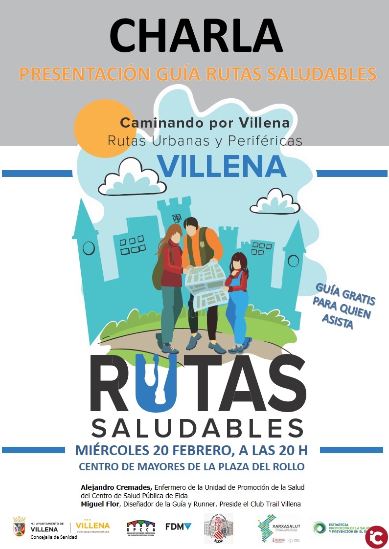 Este miércoles 20 de febrero, a las 20h se presenta de modo público la Guía Rutas Saludables por Villena, con la presencia del diseñador y runner Miguel Flor, y con Alejandro Cremades, Enfermero de Salud Pública